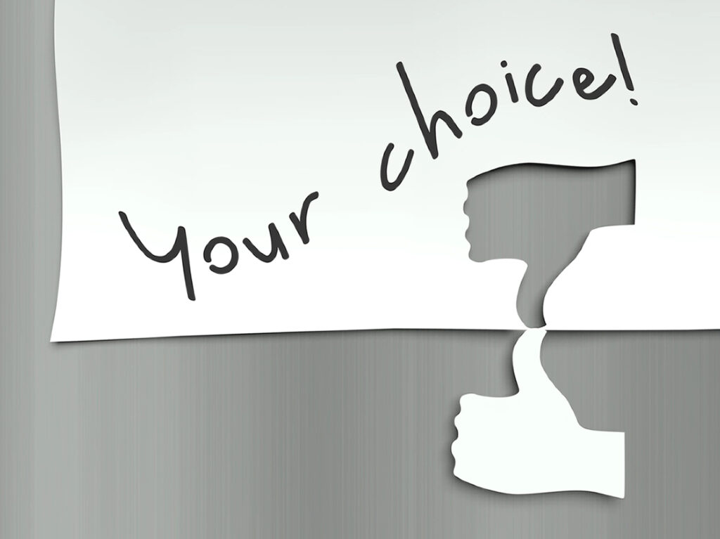 Your choice concept, hand finger thumb up and down