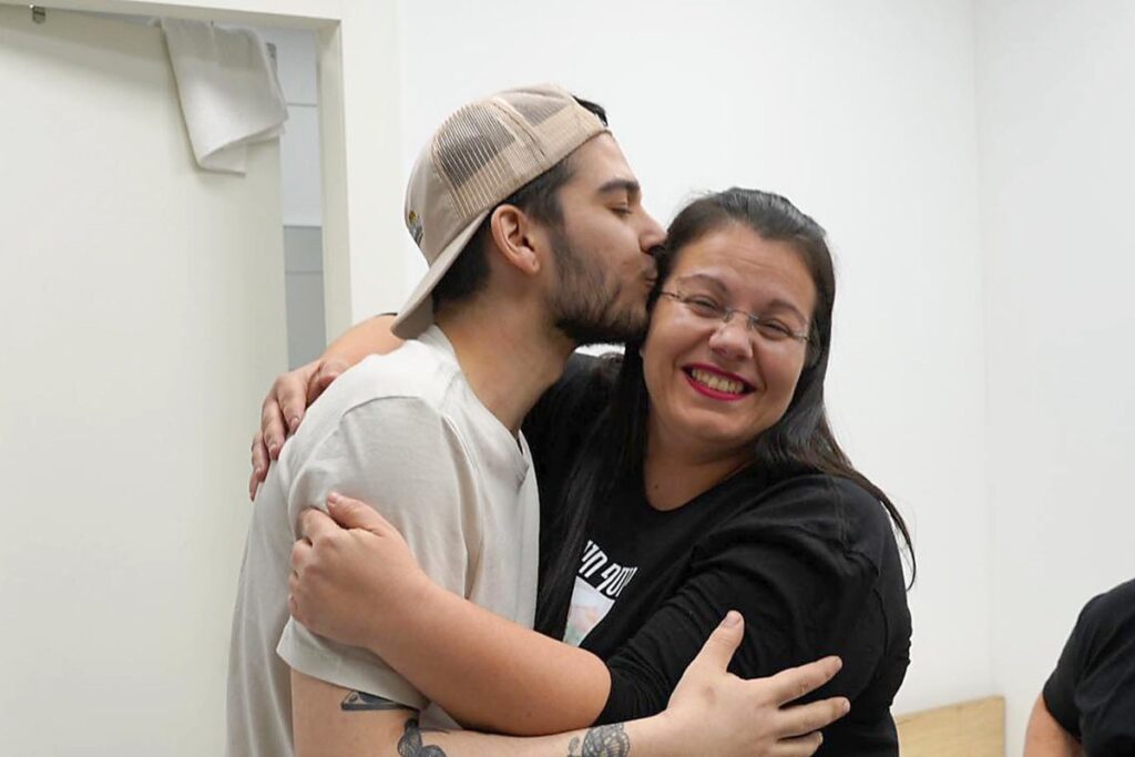 Gali and Ziv were taken prisoner and were separated in Gaza. After their release, they were finally reunited with their families—and each other—for the first time in two years.